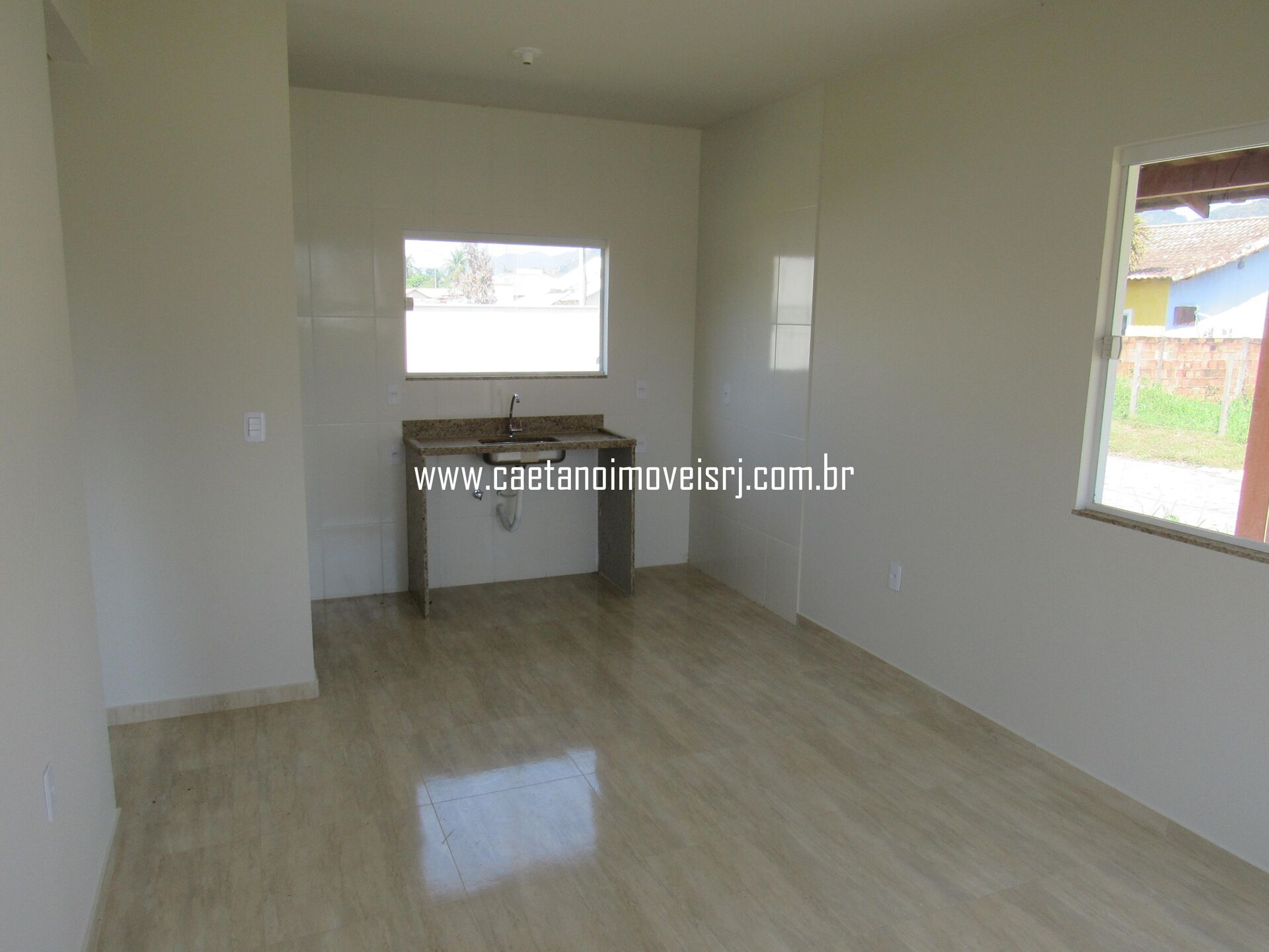 Casa nova com quintal, localizada em Papucaia, Cachoeiras de Macacu/RJ, composta de 1 quarto, sala, cozinha americana, banheiro social, área de serviço e varanda.