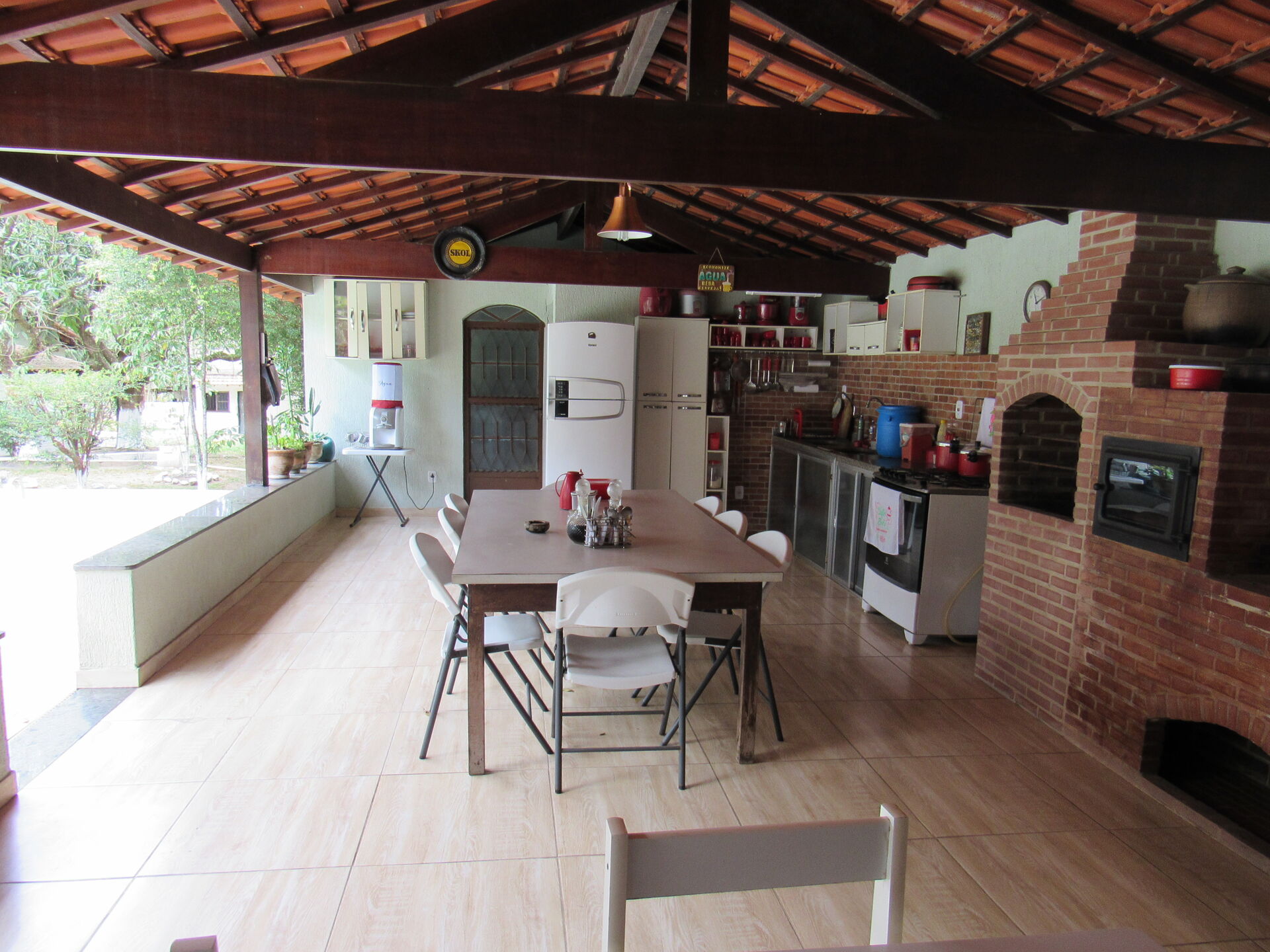 Além disso, possui piscina, área gourmet com churrasqueira, forno e fogão à lenha, área para jogos, banheiro externo; garagem coberta; terreno todo gramado, ajardinado, com diversas frutíferas e excelente localização.